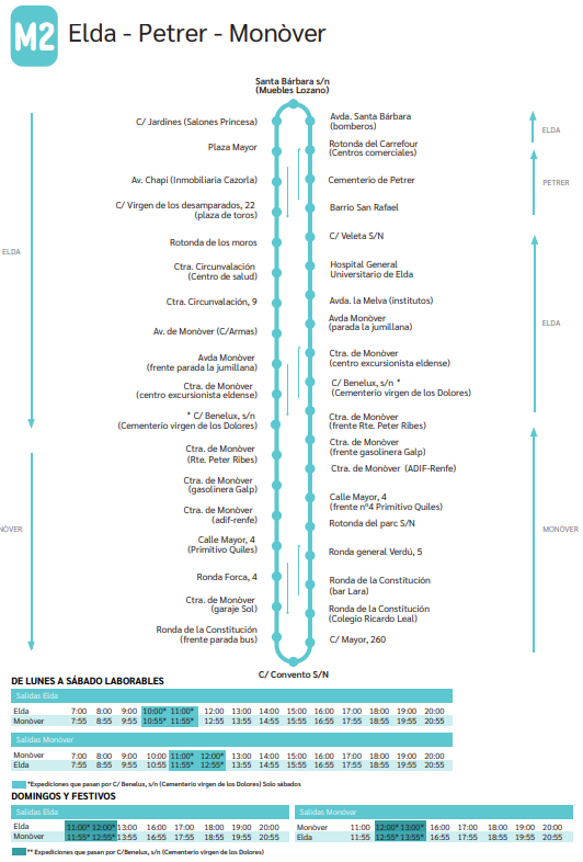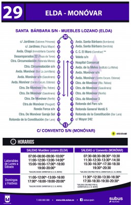 • Servicio interurbano operado por Vectalia, que conecta el centro de Elda con Monóvar.